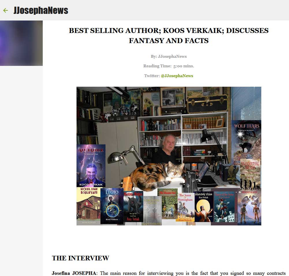 Interview Interview JJosephaNews koosverk maart 10, 2022 “Best selling author discusses fantasy and facts.” Read the interview Doorgaan met lezen Vorige: The Sandman Stories, Hindi EditionVolgende: Pharos Books in India printed 9 more titles Gerelateerde verhalen Interview Interview Het Streekblad koosverk maart 4, 2025 Interview Interview World Inkers koosverk februari 28, 2025 Interview Interview Pharos Books koosverk januari 28, 2025